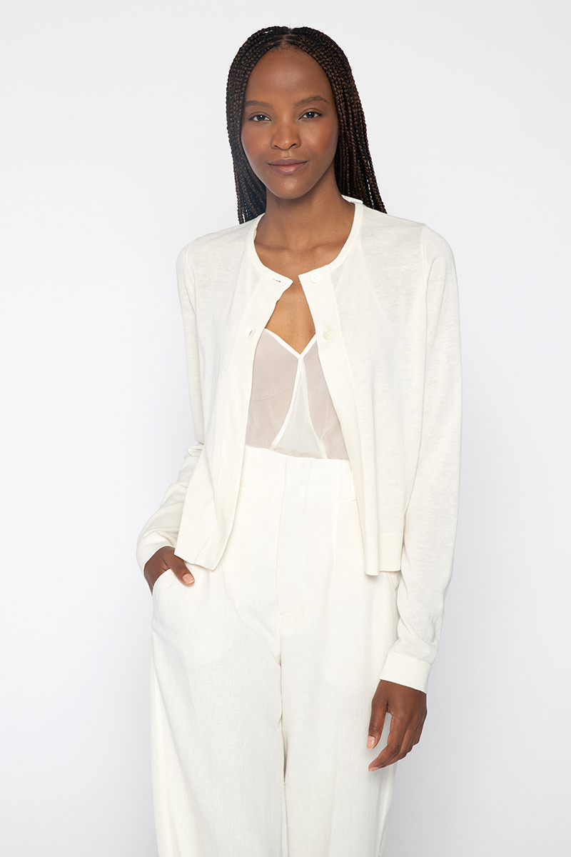 Dress Cardigan Posted on August 13, 2022October 24, 2022 by Andy Bartmess KINROSS · Women's Cashmere / Silk - Spring 2023 · Dress Cardigan LSSE3-142 – 85% Silk / 15% Cashmere – 16gg SKU: LSSE3-142 Category: Women's Cashmere / Silk - Spring 2023 Available Colors: Black Ivory Navy Related products Seamed Tank Read more S/L Surplice Read more Easy Cardigan Read more Ruffle Sleeve Crew Read more Previous: Easy Cardigan