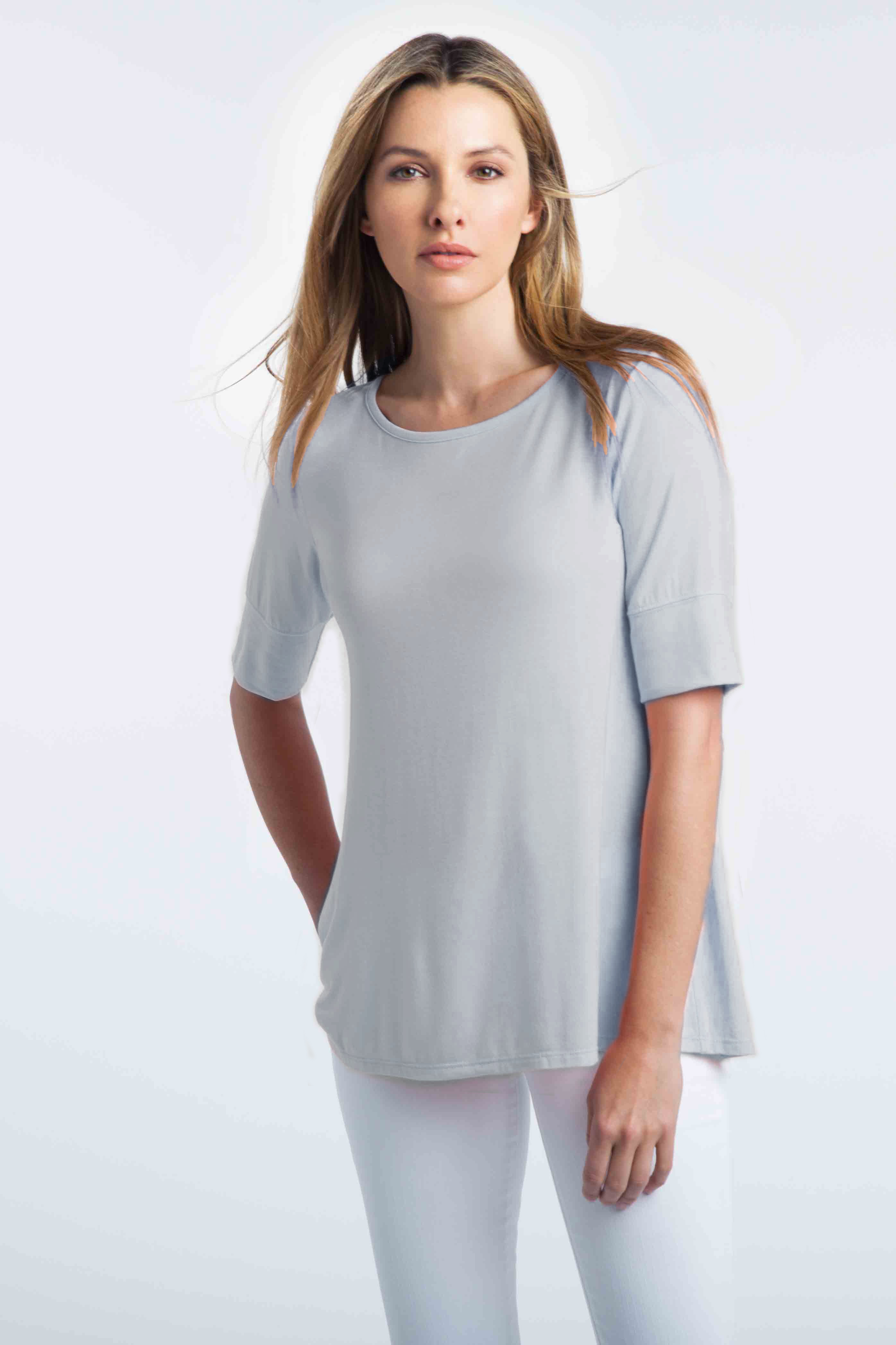 Elbow Sleeve Swing Crew Posted on July 8, 2019August 25, 2019 by Andy Bartmess KINROSS · Women's Tees - Resort 2019 · Elbow Sleeve Swing Crew KL19-108R – 95% Rayon / 5% Spandex – Made in USA SKU: KL19-108R Category: Women's Tees - Resort 2019 Available Colors: Grigio Lt. Grey Related products Ruched Sleeveless Funnel Read more Ruched Tank – Resort 2019 Read more Boatneck Tunic – Resort 2019 Read more Double Layer Tank Read more Previous: Ruched L/S Crew- Resort 2019 Next: Boatneck Tunic – Resort 2019
