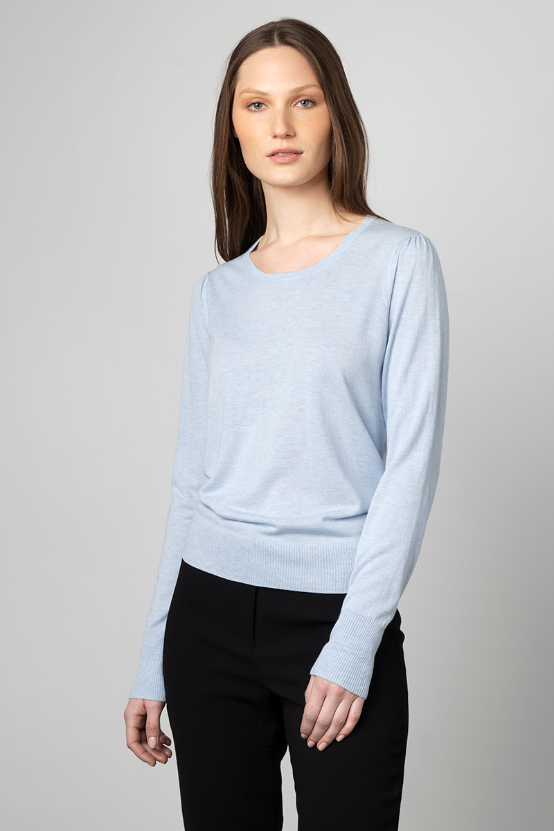 Gathered Sleeve Scoopneck - Kinross Cashmere
