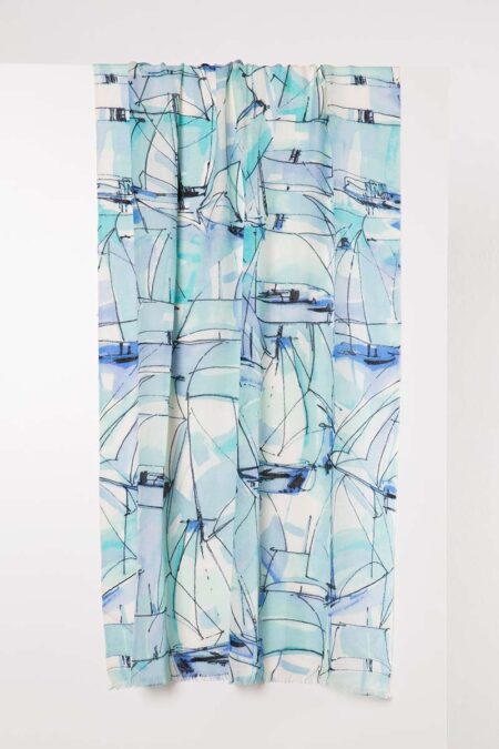 Sail Print Scarf Posted on August 19, 2016August 19, 2016 by Andy Bartmess KINROSS · Women's Printed & Woven Scarves Spring 2017 · Sail Print Scarf KA17-11S – 50% Silk / 50% Cashmere – Woven – 76″ x 26″ SKU: KA17-11S Category: Women's Printed & Woven Scarves Spring 2017 Available Colors: Aquatint Related products Printed Stripe Scarf Read more Wave Geo Print Scarf – Bluewash Read more Wave Geo Print Scarf – Aquatint Read more Shell Print Scarf Read more Previous: Shell Print Scarf Next: Brushwork Print Scarf