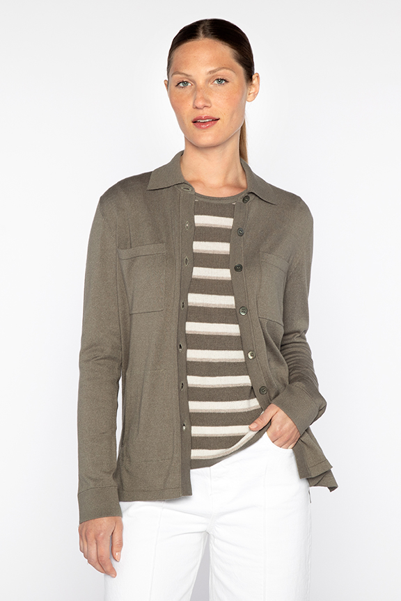 Shirt Cardigan Posted on May 6, 2024July 21, 2024 by Andy Bartmess KINROSS · Women's Cotton Cashmere Blend - Resort 2024 · Shirt Cardigan LRSD4-205 – 71% Cotton / 24% Polyamide / 5% Cashmere – 16gg SKU: LRSD4-205 Category: Women's Cotton Cashmere Blend - Resort 2024 Available Colors: Eucalyptus Related products Reversible Crew Read more Lurex Tipped Splitneck Crew Read more Crop Utility Cardigan Read more Doubleknit Hi-Low Funnel Read more Previous: Reversible Print Crew Next: Crop Utility Cardigan
