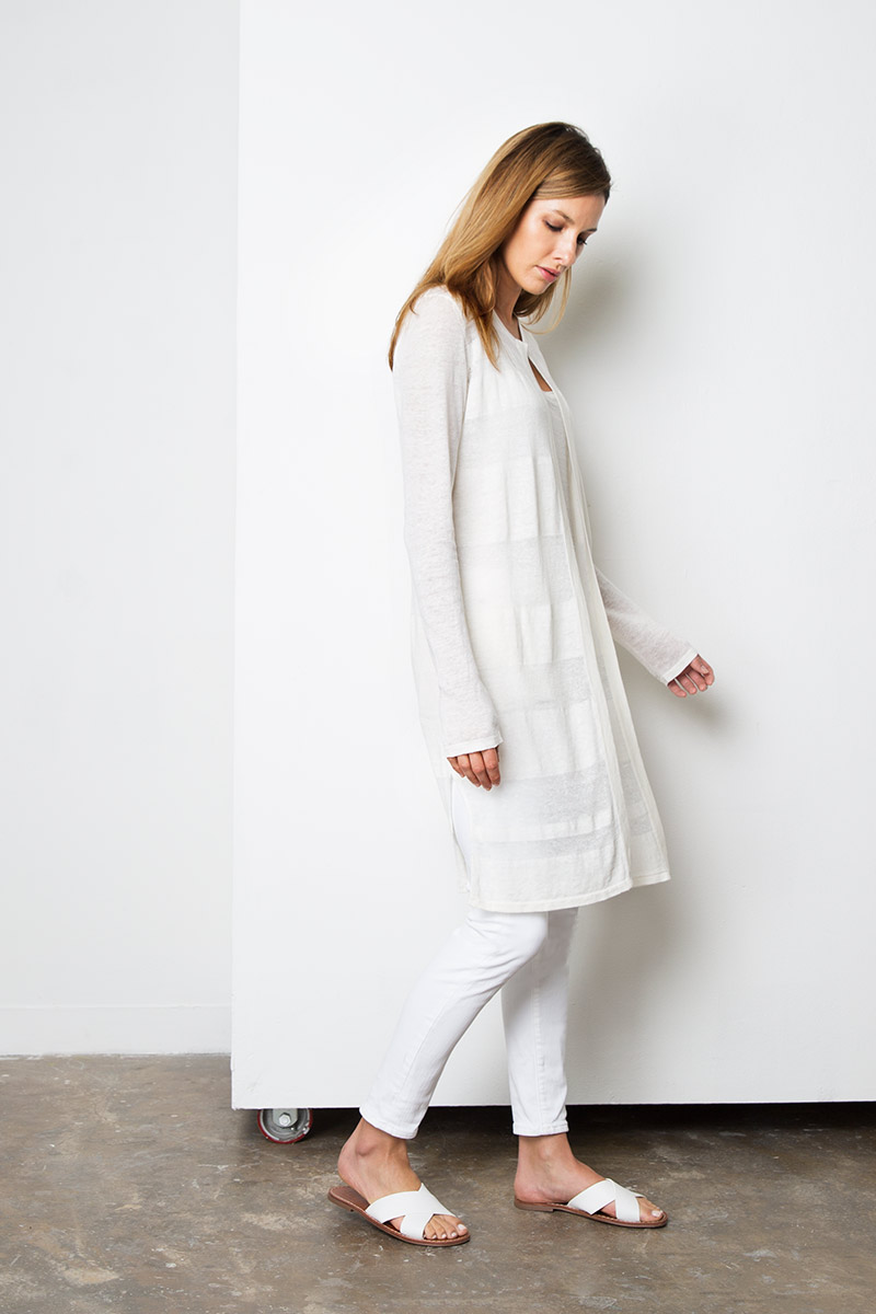 Solid Shadow Stripe Duster Posted on August 19, 2016August 19, 2016 by Andy Bartmess KINROSS · Women's 100% Linen Spring 2017 · Solid Shadow Stripe Duster KL17-49S – 100% Linen – 12gg SKU: KL17-49S Category: Women's 100% Linen Spring 2017 Available Colors: Chalk Pebble Sand Related products Solid Tee Read more Ikat Tee Read more Ikat Drape Cardigan Read more Stripe Border Poncho Read more Previous: Scoop Neck Tank – Pebble Next: Solid Shadow Stripe Pullover