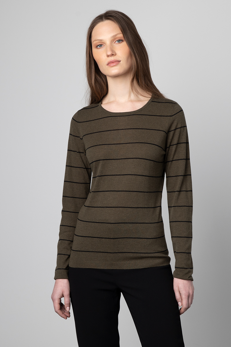 Stripe Crew Posted on January 20, 2022April 1, 2022 by Andy Bartmess KINROSS · Women's Cashmere / Silk - Fall 2022 · Stripe Crew LFSE2-229 – 85% Silk / 15% Cashmere – 16gg SKU: LFSE2-229 Category: Women's Cashmere / Silk - Fall 2022 Available Colors: Black / Birch Black Cherry / Flannel Olive / Black Sky / Birch Related products T-Neck Read more S/L Seamed Funnel Read more Surplice Read more Crewneck Read more Previous: Crewneck Next: T-Neck
