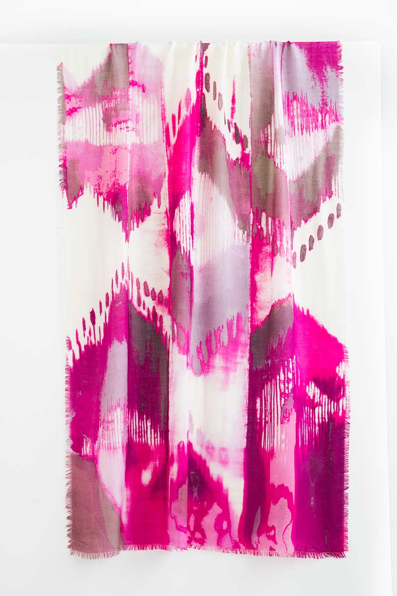 • Waterfall Print Scarf - Black Multi Kinross Cashmere 100% Cashmere Fuchsia Multi