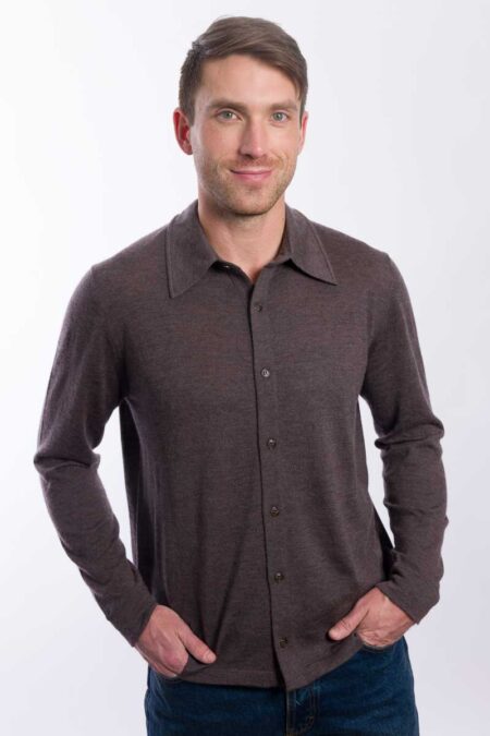 Worsted Shirt Cardigan Posted on February 3, 2026February 4, 2026 by Andy Bartmess KINROSS · Men’s 100% Cashmere - Fall 2026 · Worsted Shirt Cardigan MFSC6-121 – 100% Worsted Cashmere – 2 ply / 16gg SKU: MFSC6-121 Category: Men’s 100% Cashmere - Fall 2026 Available Colors: Black Flannel Navy Saddle Related products Coverstitch Sweatshirt Read more Rib Zip Mock Cardigan Read more V-Neck Read more Suede Trim Qtr Zip Mock Read more Previous: Worsted Vee Next: Suede Trim Qtr Zip Mock