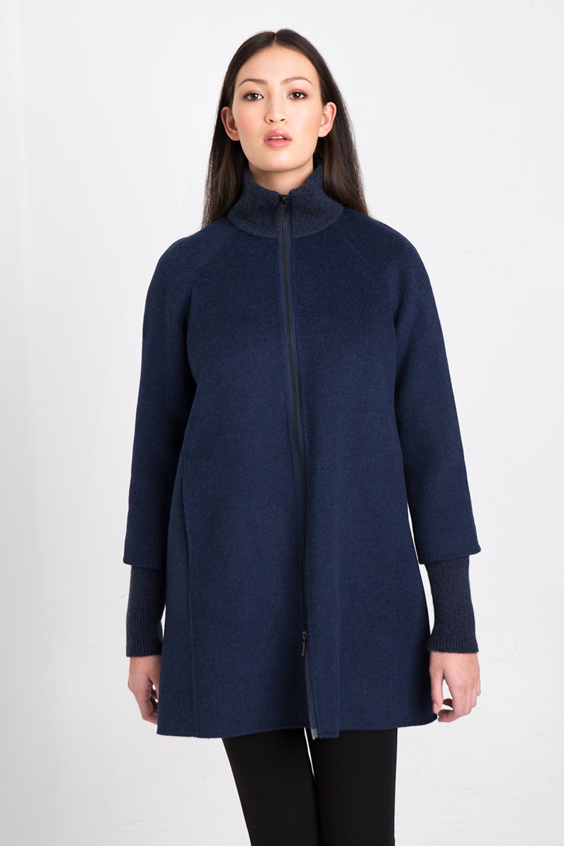 Zip Mockneck Coat w/ Rib Detail – Dusk